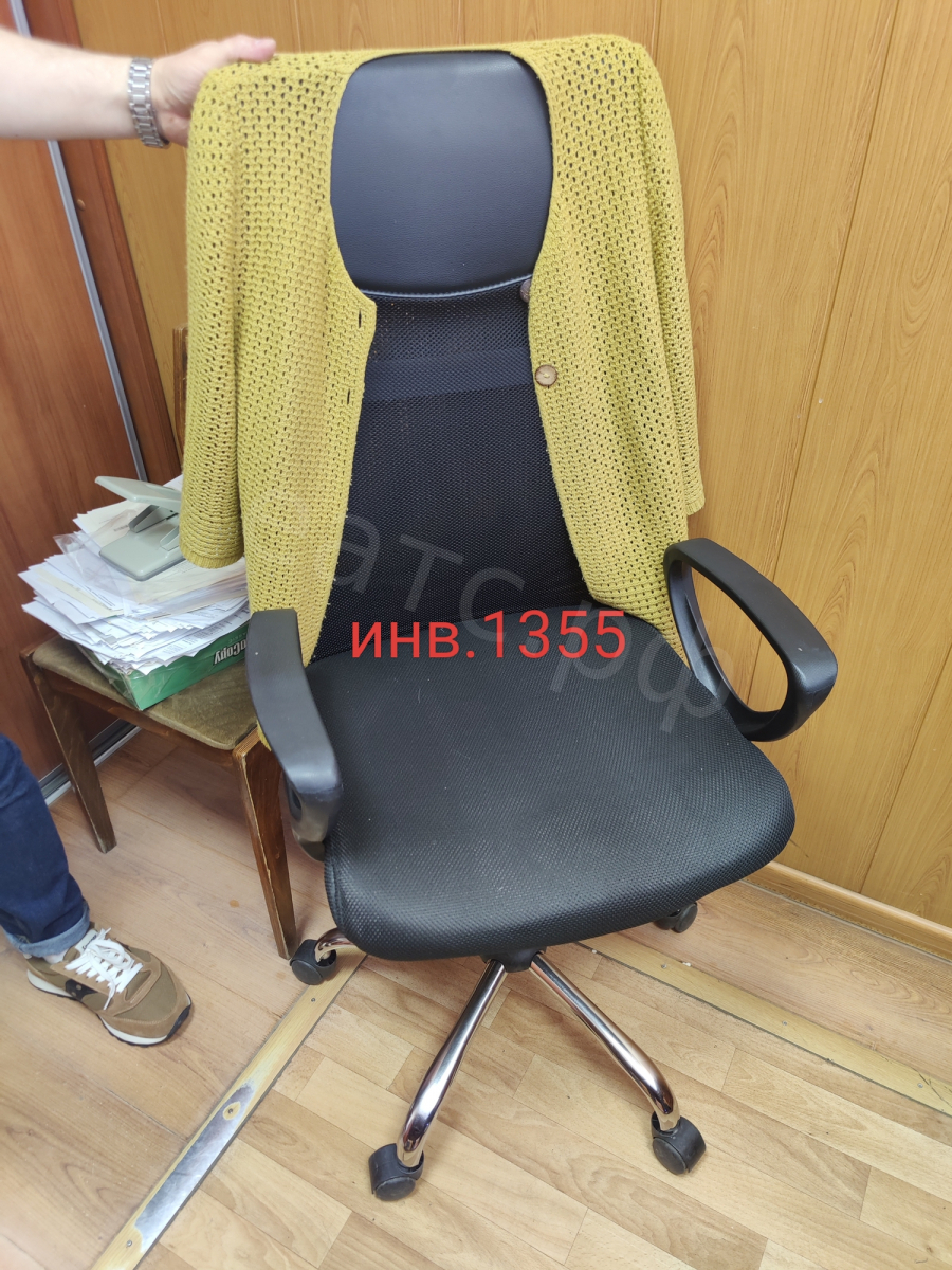 15. Кресло с подлокотниками, хром.черное, инв. № 1355