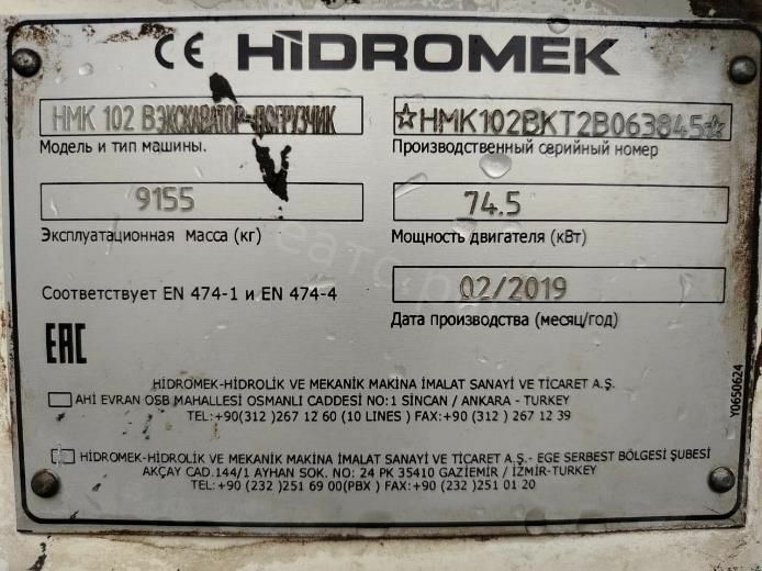 Лот №1. Экскаватор-погрузчик Hidromek, HMK102B, 2019г.в. гос.рег. знак 7208АЕ 16, VIN/Заводской номер HMK102BKT2B063845