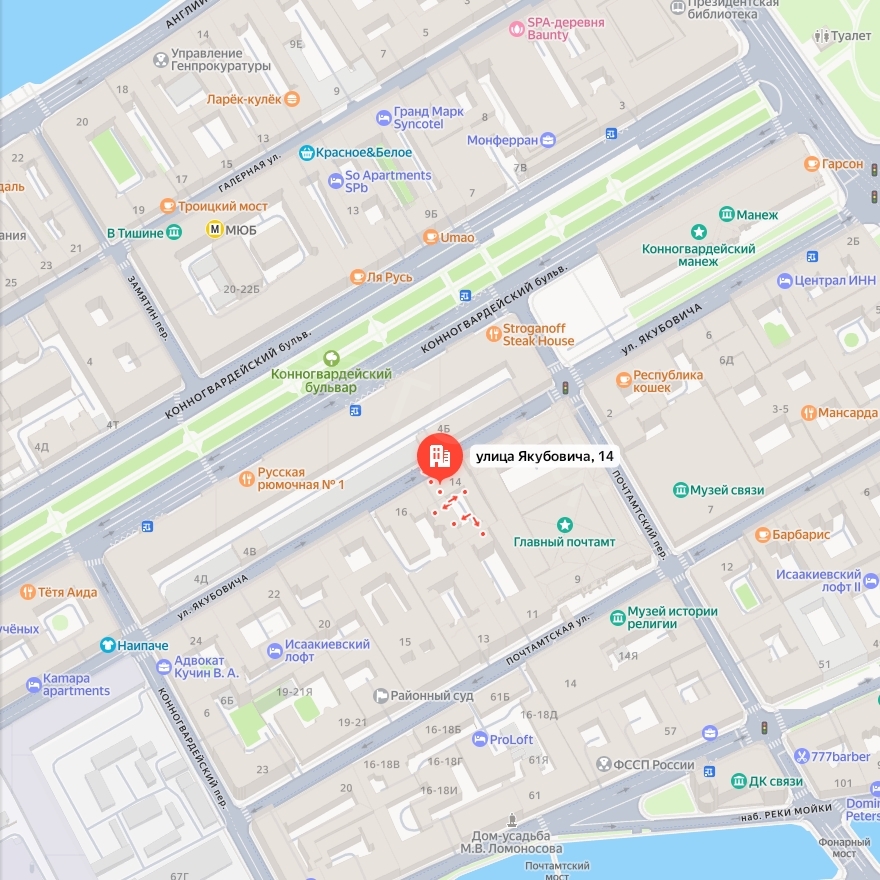 Адрес: Санкт-Петербург, ул. Якубовича, д. 14, литера. А, кв. 19;