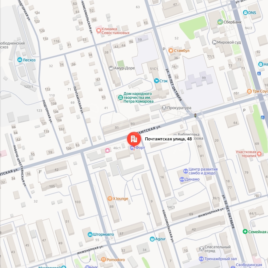 Адрес: Амурская область, г. Свободный, ул. Почтамтская, д.48